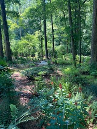 Known as shade gardening, there are boundless plant choices to consider when planning your shady places. Shade-tolerant plants include trees, shrubs, groundcovers, vines, perennials, bulbs, ornamental grasses and annuals. Masses of ferns of differing species are favorites of mine! For color, I adore the red and/or white cardinal flower (lobelia cardinalis) and the wonderful “green-and-gold” or golden star plant (Chrysogonum virginianum). Clumps of the cast iron plant (aspidistra) are commanding with striking green spears.